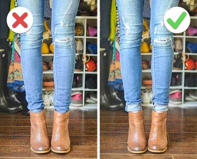 Não coloque a calça dentro da bota. Dobre a barra e deixe do lado de fora, fica muito melhor.