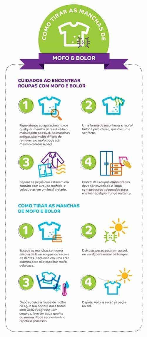 Vários fatores podem causar o aparecimento de manchas de mofo e bolor, mas o mais importante é a umidade. Casas mais antigas podem concentrar umidade nas paredes e armários, causando o aparecimento de mofo e bolor. Tente manter a casa ventilada e nunca guarde roupas ainda úmidas no armário.