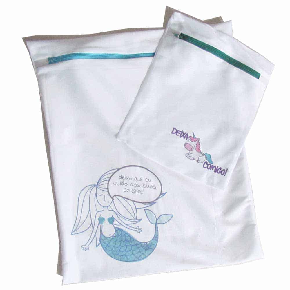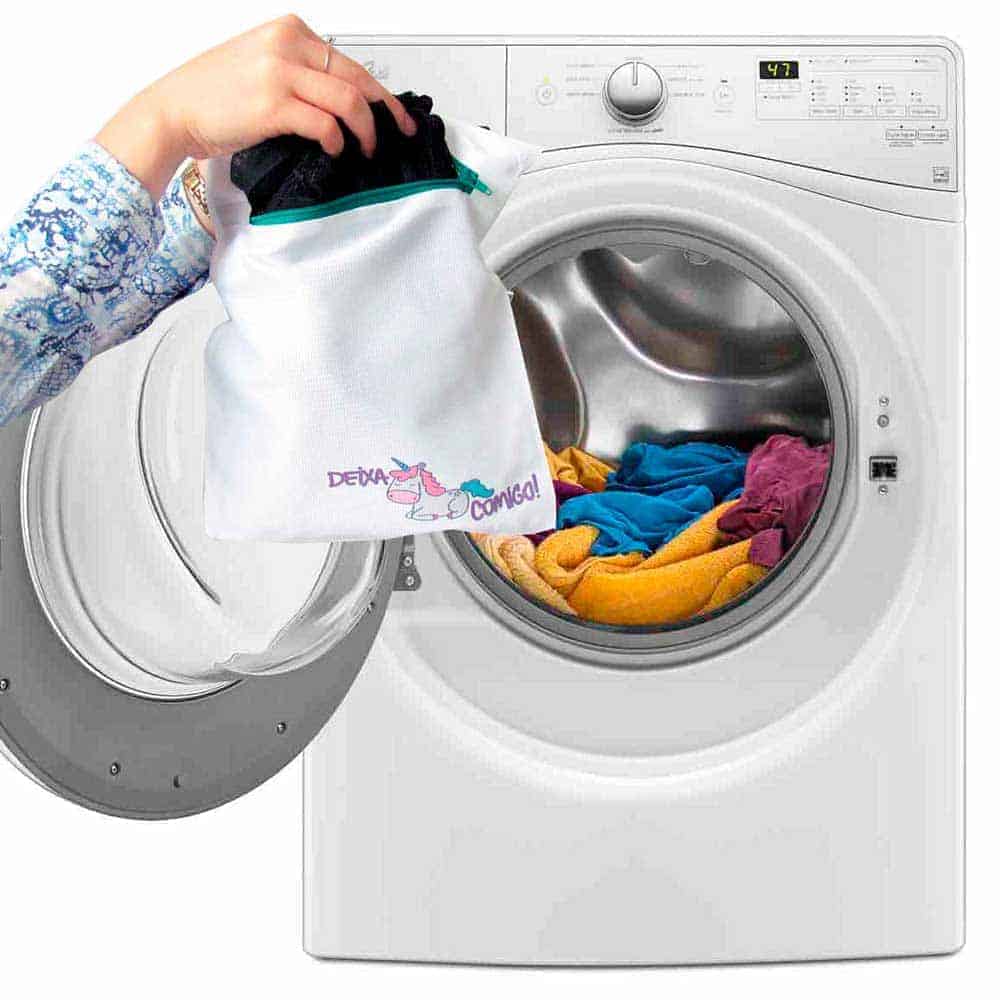 O saquinho multiuso na lavagem das roupas evita o embaraço dos tecidos e fios, garantindo que sua peça preferida continue em perfeito estado após a lavagem.. Além disso, garante a proteção do atrito direto com outras peças e com a própria máquina. Além de possuir um detalhe especial no zíper, que evita atritos com a lavadora e outras peças.
